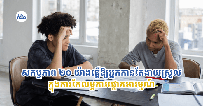 19. រស់នៅក្នុងបច្ចុប្បន្ន: ព្យាយាមយល់ដឹងពីអ្វីដែលកើតឡើងនៅពេលបច្ចុប្បន្ន។ ការដឹងខ្លួនជួយអ្នកកាត់បន្ថយគំនិតរាយប៉ាយ។