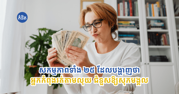ការរត់តាមលុយមិនមែនជារឿងអាក្រក់នោះទេ ប៉ុន្តែប្រសិនបើវាជាគោលដៅតែមួយគត់របស់អ្នក ហើយអ្នកភ្លេចពីសុភមង្គល និងសុខភាពផ្លូវចិត្ត នោះអ្នកអាចនឹងជួបប្រទះនូវភាពសោកស្តាយនៅពេលក្រោយ។ ខាងក្រោមនេះជាសកម្មភាព ២៥ យ៉ាងដែលបង្ហាញថាអ្នកប្រហែលជាកំពុងរត់តាមលុយ ជំនួសឱ្យសុភមង្គល៖