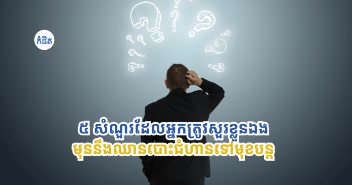 ការសម្រេចចិត្តដ៏ត្រឹមត្រូវមិនមែនកើតឡើងដោយចៃដន្យនោះទេ តែវាកើតចេញពីដំណើរការនៃការសួរសំណួរ។ មុននឹងអ្នកបោះជំហានទៅមុខក្នុងអាជីព អាជីវកម្ម ឬជីវិតផ្ទាល់ខ្លួន ដូចនេះសំណួរទាំង ៥ នេះនឹងជួយអ្នកឲ្យវាយតម្លៃពីជម្រើសរបស់អ្នកដោយភាពឆ្លាតវៃ។