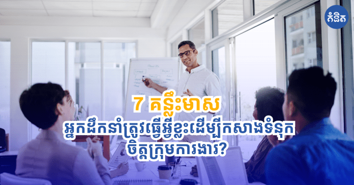 ការកសាងទំនុកចិត្ត គឺជារឿងសំខាន់បំផុតសម្រាប់អ្នកដឹកនាំគ្រប់រូប ជាពិសេសសម្រាប់សហគ្រិន និងម្ចាស់អាជីវកម្មខ្នាតតូច និងមធ្យមនៅកម្ពុជា។ នៅពេលដែលក្រុមការងារ ដៃគូ និងអតិថិជនមានទំនុកចិត្តលើអ្នក នោះអាជីវកម្មរបស់អ្នកនឹងមានភាពរឹងមាំ និងរីកចម្រើន។ ខាងក្រោមនេះគឺជា 7 ចំណុចដែលអ្នកដឹកនាំអាចធ្វើដើម្បីកសាងទំនុកចិត្ត៖