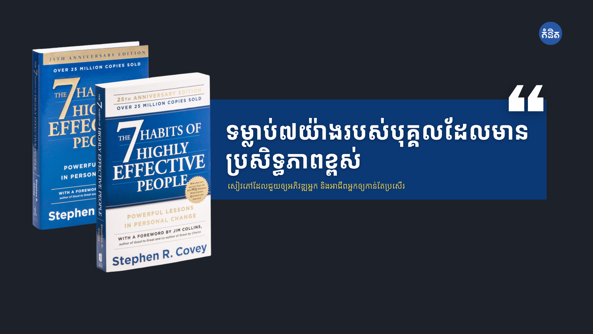 ទម្លាប់៧យ៉ាងរបស់បុគ្គលដែលមានប្រសិទ្ធភាពខ្ពស់ គឺជាសៀវភៅកែលម្អ និងអភិវឌ្ឍខ្លួនឯងមួយ ដែលបានជួយមនុស្សរាប់លាននាក់ឱ្យសម្រេចបាននូវគោលដៅរបស់ពួកគេ និងរស់នៅក្នុងជីវិតកាន់តែពេញលេញ និងស្រស់បំព្រងជាងមុន។ វាជាធនធានដ៏មានតម្លៃសម្រាប់អ្នកដែលចង់បង្កើនប្រសិទ្ធភាពផ្ទាល់ខ្លួន និងអាជីពឲ្យកាន់តែប្រសើរជាងមុន។