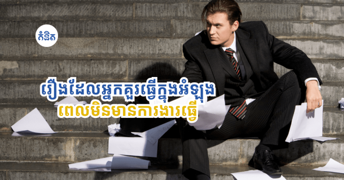 ជារួម ការគ្មានការងារធ្វើគ្រាន់តែជាស្ថានភាពបណ្តោះអាសន្នប៉ុណ្ណោះ ហើយការអនុវត្តសកម្មភាពទាំង 8 ខាងលើ នឹងជួយឱ្យអ្នករក្សាបាននូវថាមពលវិជ្ជមាន និងបង្កើនតម្លៃខ្លួនរបស់អ្នក។ នៅពេលដែលឱកាសការងារថ្មីមកដល់ អ្នកនឹងក្លាយជាបេក្ខជនដែលមានសក្តានុពលបំផុត ព្រោះអ្នកមិនបានបណ្តោយឱ្យពេលវេលាកន្លងផុតទៅដោយឥតប្រយោជន៍ឡើយ។