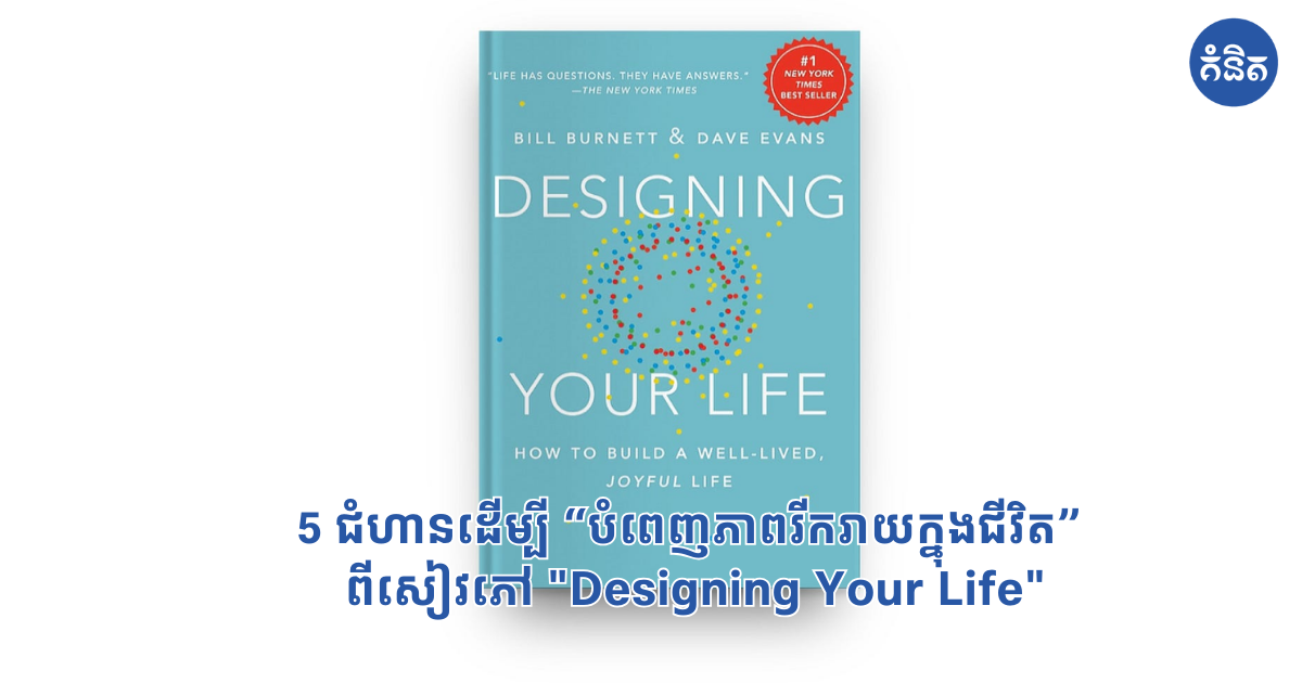 សៀវភៅ “Designing Your Life” ដោយ Bill Burnett និង Dave Evans រៀបរាប់អំពីដំណើរការរចនាដែលផ្តោតលើមនុស្សសម្រាប់បង្កើតបំពេញភាពរីរាយក្នុងជីវិត។ នេះគឺជាជំហានសំខាន់ៗចំនួន 5 ដែលពាក់ព័ន្ធ៖