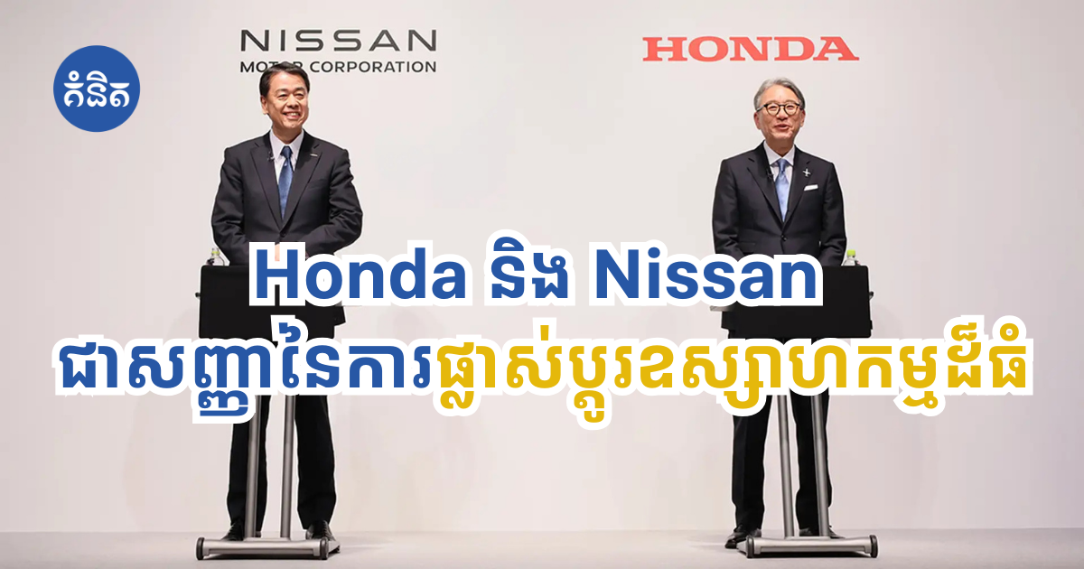 ក្រុមហ៊ុន Honda និង Nissan ទំនងជានឹងបង្ហាញនៅថ្ងៃចន្ទ (២៣ ធ្នូ) នូវកិច្ចព្រមព្រៀងមួយដើម្បីស្វែងយល់ពីការច្របាច់បញ្ចូលគ្នាដោយការបង្កើតក្រុមហ៊ុនកាន់កាប់រួមគ្នាមួយ ដោយមានគោលបំណងឈានដល់កិច្ចព្រមព្រៀងមួយនៅខែមិថុនា ឆ្នាំ 2025 ។