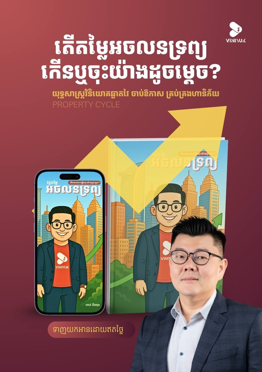 ដូច្នេះ ដើម្បីឱ្យអ្នកកាន់តែយល់ពីវដ្តអចលនទ្រព្យ និងដឹងពីដំណាក់កាលនៃតម្លៃអចលនទ្រព្យថាតើអាច កើន និងចុះយ៉ាងដូចម្តេចខ្លះ? ចូរអ្នកទាយយកសៀវភៅអំពីចំណេះដឹងទាក់ទងអចលនទ្រព្យ ដែលដកស្រង់ដោយផ្ទាល់ពី លោក ហាក់ គីមថុង ដែលជាស្ថាបនិក និងជាប្រធានក្រុមហ៊ុន Viniyuk ”ដោយឥតគិតថ្លៃ”។