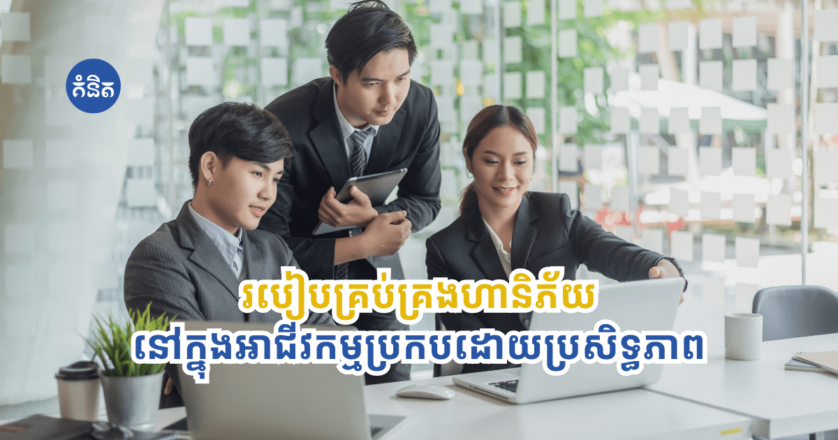 - រៀបបញ្ជីហានិភ័យ: អង្គុយពិភាក្សាជាមួយក្រុមការងាររបស់អ្នកដើម្បីរកឱ្យឃើញហានិភ័យដែលអាចកើតមាន។ អ្នកអាចបែងចែកវាជាក្រុមៗដូចជា៖