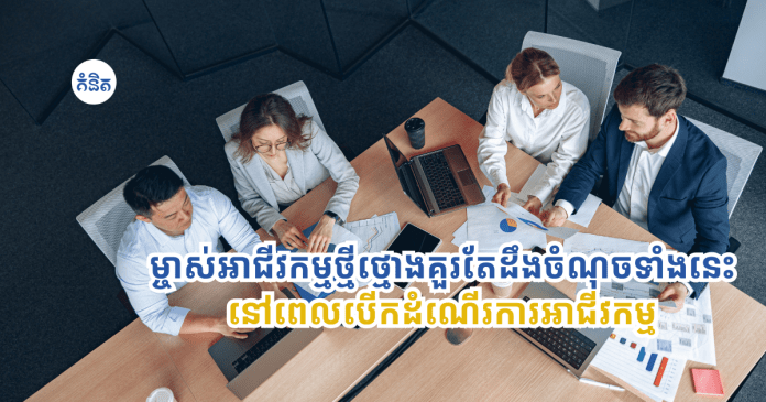 ការចាប់ផ្ដើមអាជីវកម្មមួយ គឺដូចជាការដាំកូនឈើដូច្នោះដែរ។ វាទាមទារការថែទាំ ការយកចិត្តទុកដាក់ និងការអត់ធ្មត់ ដើម្បីឱ្យវាលូតលាស់រឹងមាំ និងផ្ដល់ផលផ្លែ។ សម្រាប់សហគ្រិនថ្មីថ្មោង ឬម្ចាស់អាជីវកម្មខ្នាតតូច និងមធ្យមនៅកម្ពុជា ការយល់ដឹងពីមូលដ្ឋានគ្រឹះសំខាន់ៗ អាចជួយកាត់បន្ថយហានិភ័យ និងបង្កើនឱកាសជោគជ័យ។ អត្ថបទនេះ នឹងលើកយកនូវចំណុចគន្លឹះដែលអ្នកគួរដឹង និងអនុវត្តនៅពេលបើកដំណើរការអាជីវកម្មរបស់អ្នក។