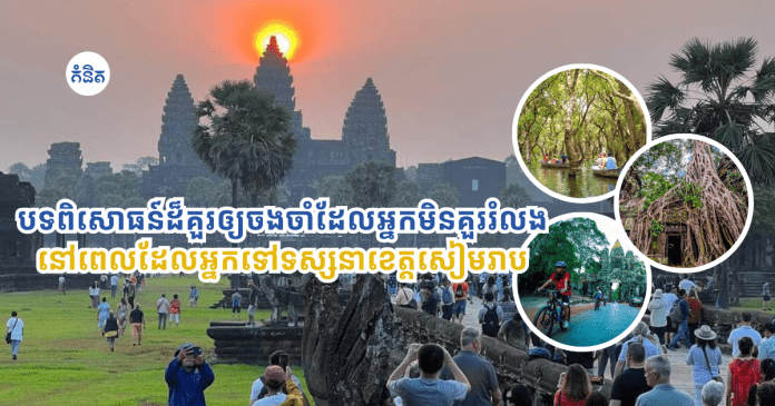 ខេត្តសៀមរាប មិនមែនគ្រាន់តែជាកន្លែងទស្សនាប្រាសាទនោះទេ តែជាទីកន្លែងសម្រាប់ទទួលយកបទពិសោធន៍ដ៏ប្លែកនិងគួរឲ្យចងចាំផងដែរ។ ដូចនេះ ដើម្បីឲ្យដំណើរកម្សាន្តរបស់អ្នកកាន់តែពិសេស អ្នកមិនគួររំលងសកម្មភាពសំខាន់ៗទាំងនេះឡើយ៖
