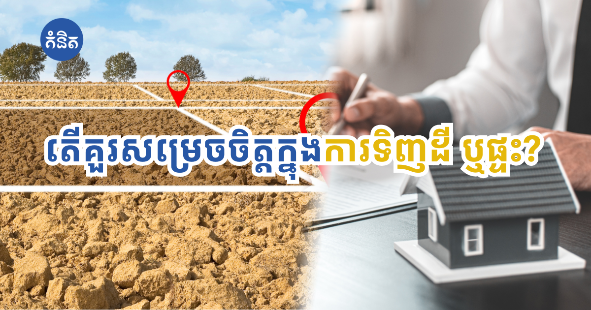 ការសម្រេចចិត្តថាតើត្រូវទិញផ្ទះ ឬដី គឺអាស្រ័យលើគោលដៅ និងស្ថានភាពហិរញ្ញវត្ថុរបស់អ្នក។ ជម្រើសទាំងពីរមានគុណសម្បត្តិ និងបញ្ហាប្រឈមរៀងៗខ្លួន ដូច្នេះអ្នកចាំបាច់ស្វែងយល់នូវតម្រូវការនៃភាពចាំបាច់របស់អ្នកជាមុនសិន។