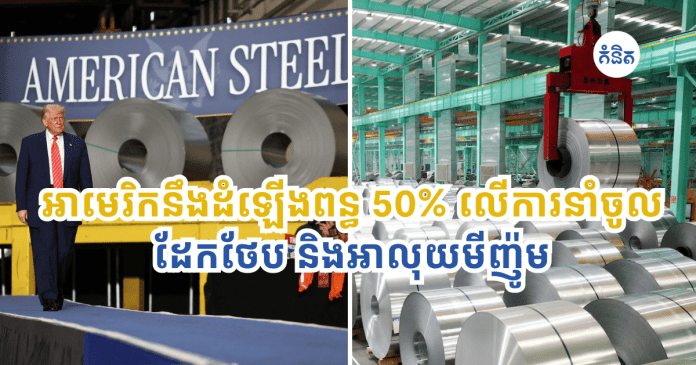 កាលពីថ្ងៃទី 30 ខែឧសភា លោកប្រធានាធិបតី Trump បានប្រកាសថា សហរដ្ឋអាមេរិកនឹងដំឡើងពន្ធលើដែកថែប និងអាលុយមីញ៉ូមពី 25% ទៅ 50% ដើម្បីជំរុញការផលិតដែកនៅអាមេរិក ការពារការងារ ពង្រឹងការផ្គត់ផ្គង់ផលិតផលក្នុងស្រុក និងកាត់បន្ថយការពឹងផ្អែកលើការនាំចូលពីប្រទេសផ្សេងៗ ជាពិសេសពីប្រទេសចិន។