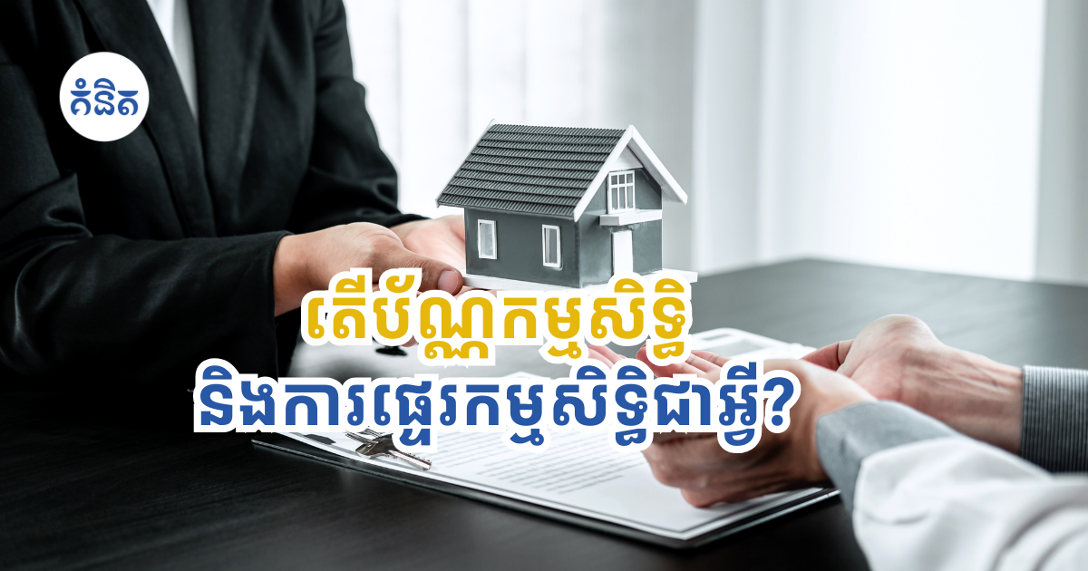 ការផ្ទេរកម្មសិទ្ធិ គឺជាដំណើរការផ្លូវច្បាប់ក្នុងការផ្ទេរកម្មសិទ្ធិលើអចលនទ្រព្យពីភាគីមួយ (អ្នកលក់) ទៅម្នាក់ទៀត (អ្នកទិញ)។ ដំណើរការនេះត្រូវតែមានឯកសារត្រឹមត្រូវច្បាស់លាស់ ដើម្បីការពារផលប្រយោជន៍របស់ភាគីទាំងពីរ និងធានាបាននូវការអនុលោមតាមតម្រូវការច្បាប់។ ជាធម្មតាវាពាក់ព័ន្ធនឹងកិច្ចសន្យា កិច្ចព្រមព្រៀង ការទូទាត់ ការបំពេញបែបបទផ្លូវច្បាប់ និងការចុះឈ្មោះប្រតិបត្តិការជាមួយអាជ្ញាធរពាក់ព័ន្ធ។ ដូច្នេះឈ្មោះអ្នកទិញត្រូវបានកត់ត្រាជាផ្លូវការថាជាកម្មសិទ្ធិករថ្មីនៃអចលនទ្រព្យ។