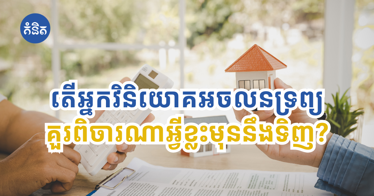 មុននឹងទិញអចលនទ្រព្យ អ្នកវិនិយោគអចលនទ្រព្យគួរតែពិចារណាលើកត្តាសំខាន់ៗមួយចំនួន ដើម្បីធានាថាគេធ្វើការសម្រេចចិត្តប្រកបដោយភាពត្រឹមត្រូវ មានចក្ខុវិស័យវែងឆ្ងាយ និងដឹងពីសក្កានុពលនៃអចលនទ្រព្យបានច្បាស់លាស់។